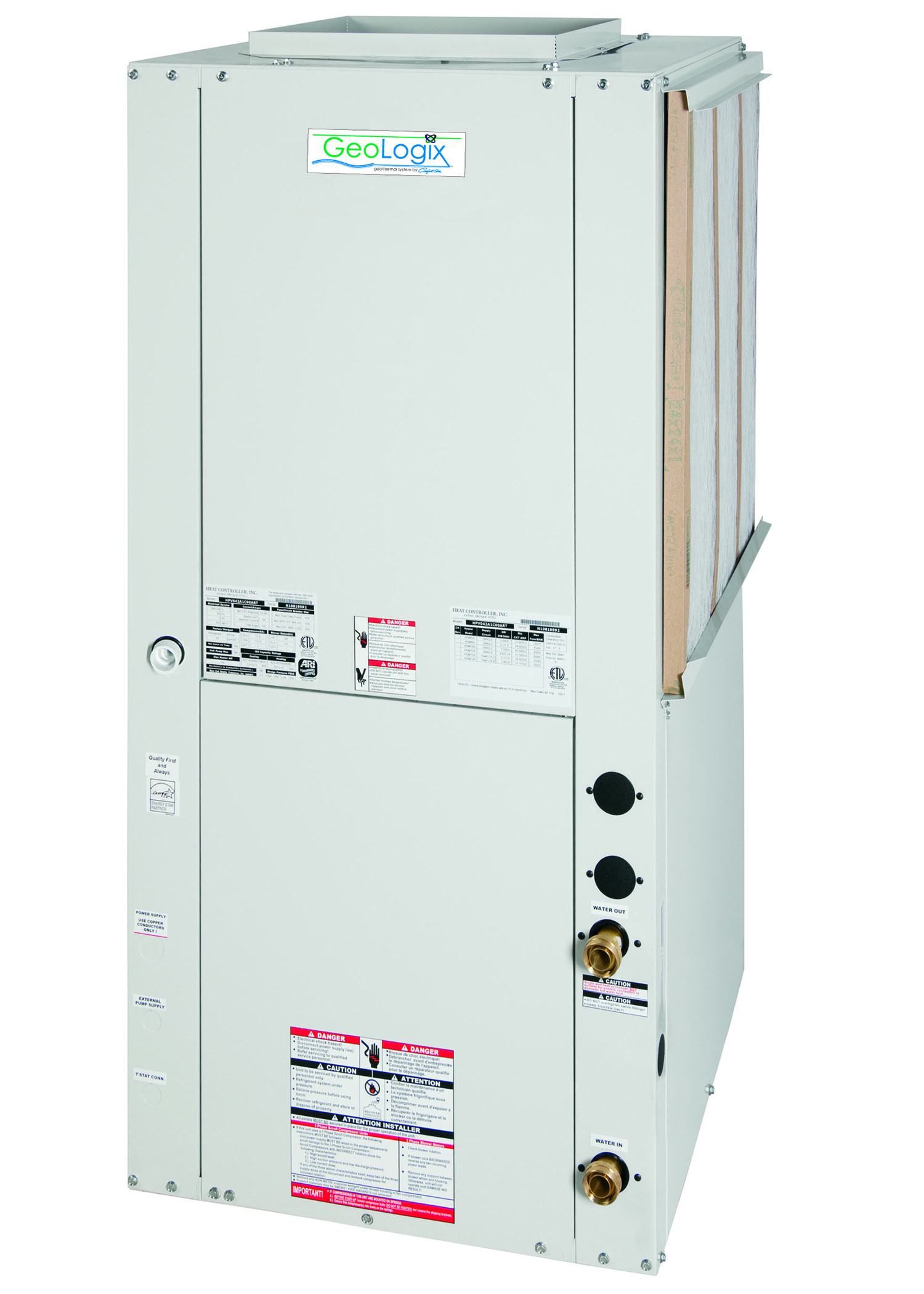 - Internal Variable Water Flow - Industry-first, Built-in vFlow® replaces a traditionally inefficient, external component of the geothermal system (water circulation) with an ultra-high-efficient, variable speed, internal water flow system consisting of an internal variable speed circulator or an internal modulating motorized water valve
